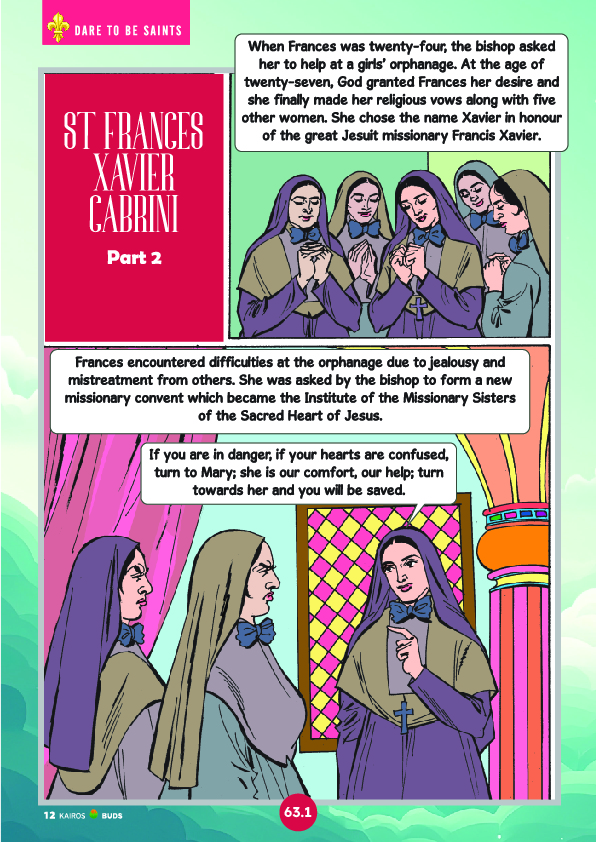 Cartoon series on the lives of Blesseds and Saints, appearing every month on our children’s magazine, Kairos Buds.